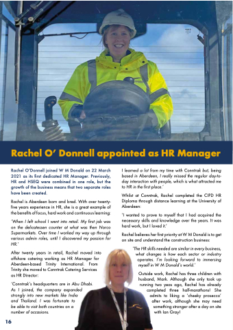 I learned a lot from my time with Conntrak but, being based in Aberdeen, I really missed the regular day-to- day interaction with people, which is what attracted me to HR in the first place.’