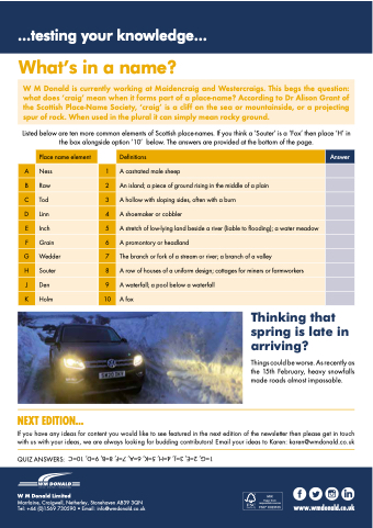 If you have any ideas for content you would like to see featured in the next edition of the newsletter then please get in touch with us with your ideas, we are always looking for budding contributors! Email your ideas to Karen: karen@wmdonald.co.uk