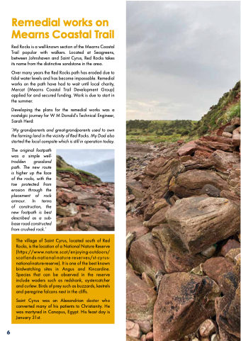 Over many years the Red Rocks path has eroded due to tidal water levels and has become impassable. Remedial works on the path have had to wait until local charity, Mercat (Mearns Coastal Trail Development Group) applied for and secured funding. Work is due to start in the summer.