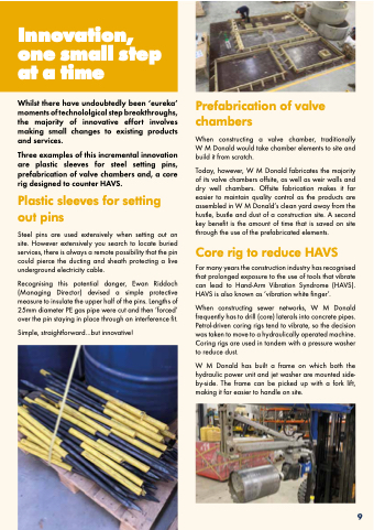 Three examples of this incremental innovation are plastic sleeves for steel setting pins, prefabrication of valve chambers and, a core rig designed to counter HAVS.