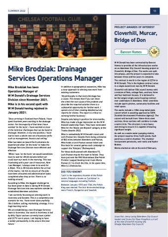 According to Mike, the biggest challenge he has been given to date is taking W M Donald Drainage Services into new markets outside its established Aberdeen activities: