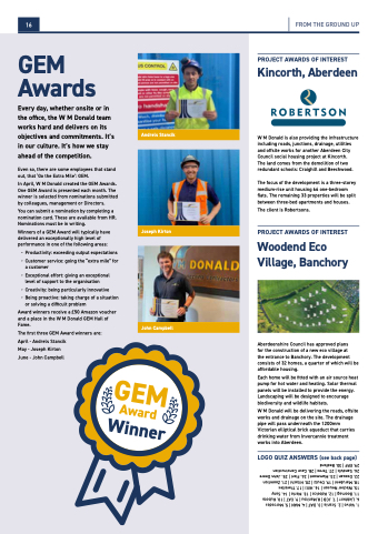 In April, W M Donald created the GEM Awards. One GEM Award is presented each month. The winner is selected from nominations submitted by colleagues, management or Directors.