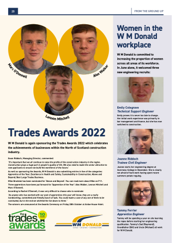 W M Donald is again sponsoring the Trades Awards 2022 which celebrates the achievements of businesses within the North of Scotland construction industry.