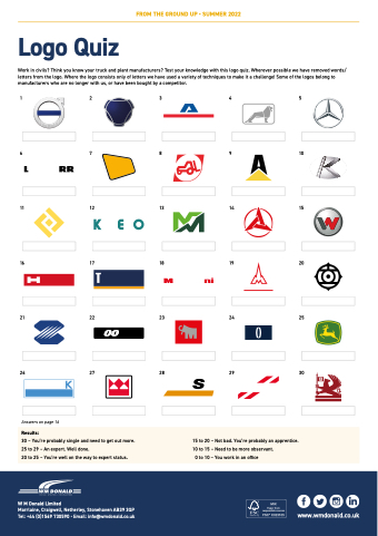 Work in civils? Think you know your truck and plant manufacturers? Test your knowledge with this logo quiz. Wherever possible we have removed words/ letters from the logo. Where the logo consists only of letters we have used a variety of techniques to make it a challenge! Some of the logos belong to manufacturers who are no longer with us, or have been bought by a competitor.
