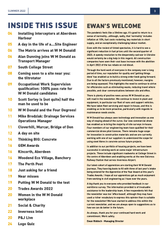 Our latest cohort of apprentices are starting their W M Donald journeys. They have big boots to fill with three of last year’s intake being entered for the Apprentice of the Year Award at this year’s Trades Awards. I hope all our apprentices get as much enjoyment from working in civil engineering as I have over the years.