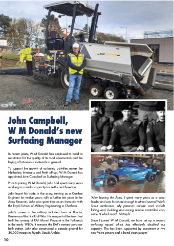 To support the growth of surfacing activities across the Netherley, Inverness and Perth offices, W M Donald has appointed John Campbell as Surfacing Manager.