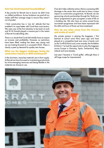 I think construction has a ‘can do’ attitude that has enabled it to cope better with Covid than most sectors. We were one of the first industries to be back at work and W M Donald played a massive part in the restart of Barratt housebuilding sites.